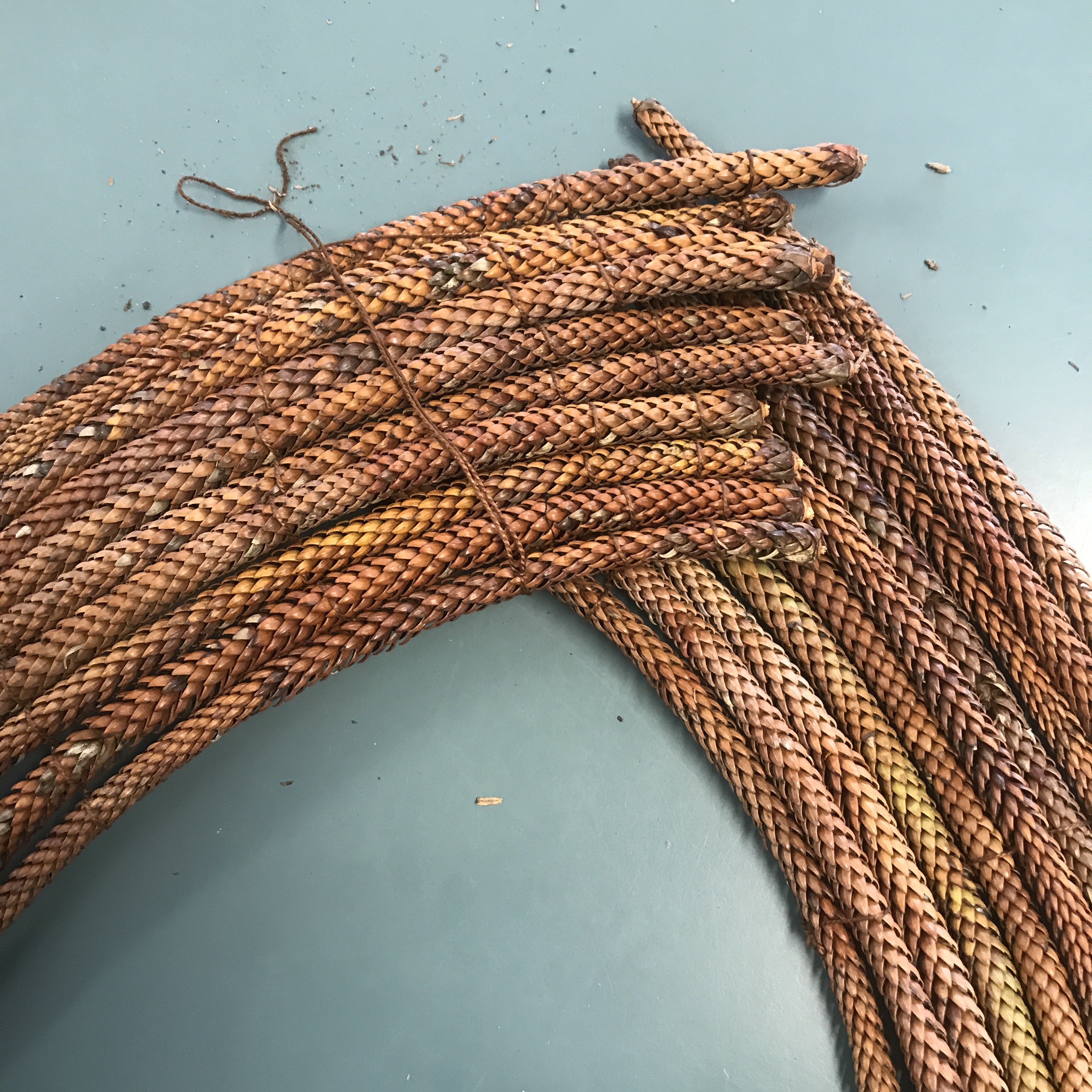 Mandy, who has a passion for recycling, and a wonderful imagination, led us on a fascinating journey using materials such as cardboard, paper (ex books, maps, shopping bags), inner tubes, beach rope, and treasures from nature. Techniques explored included folding, cutting & glueing, twining, finger knitting, weaving and mono printing. She showed us pieces of her work (including one woven from the pages of a book); photos of a number of her installations; and discussed the impact of repetition in design. Info was shared about sourcing materials and equipment. Mandy also touched on framing and pricing of work. She talked about her experience of residencies, the value of these for artistic practice, and how to apply.